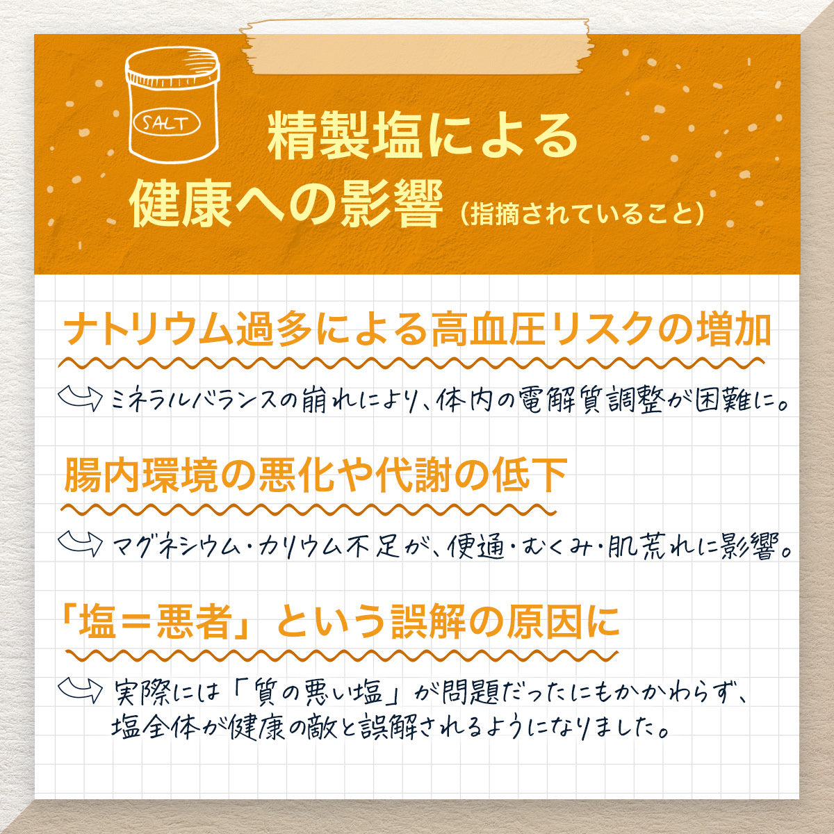 一般的な塩と比べ、ミネラル豊富で身体に良い成分が含まれています。